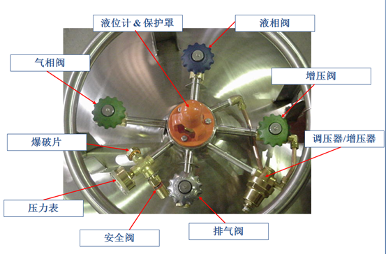 查特杜瓦瓶頂部配置可以看出,配套完整的調(diào)壓增壓/安全閥體系是標(biāo)準(zhǔn)。